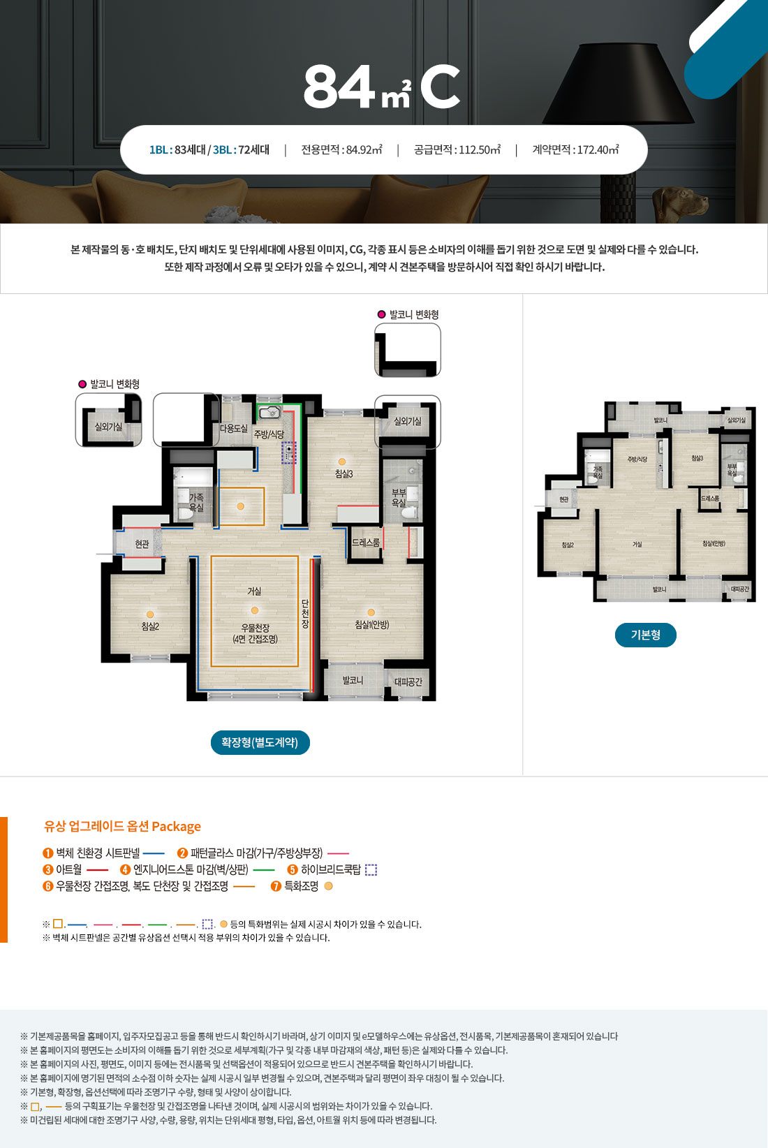 ※ 본 아파트는 「주택공급에 관한 규칙」 제47조의3에 따라 불법전매나 공급질서 교란 등으로 계약취소된 주택을 사업주체가 취득하여 재공급하는 주택으로써, 최초 공급계약 당시 선택된 발코니 확장 및 추가선택품목 옵션에 따라 자재의 주문・제작 및 공사가 진행된 관계로, 청약자는 위 발코니 확장 공사대금 및 추가선택품목 공급대금을 추가로 지급할 것을 조건으로 청약이 가능합니다. 이를 거부할 경우에는 아파트 공급계약 체결이 불가하다는 점을 청약 전 반드시 확인하시기 바랍니다.